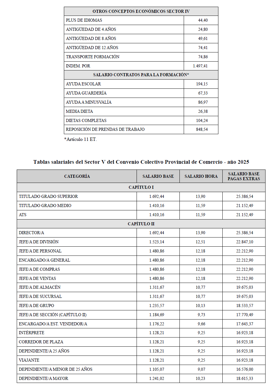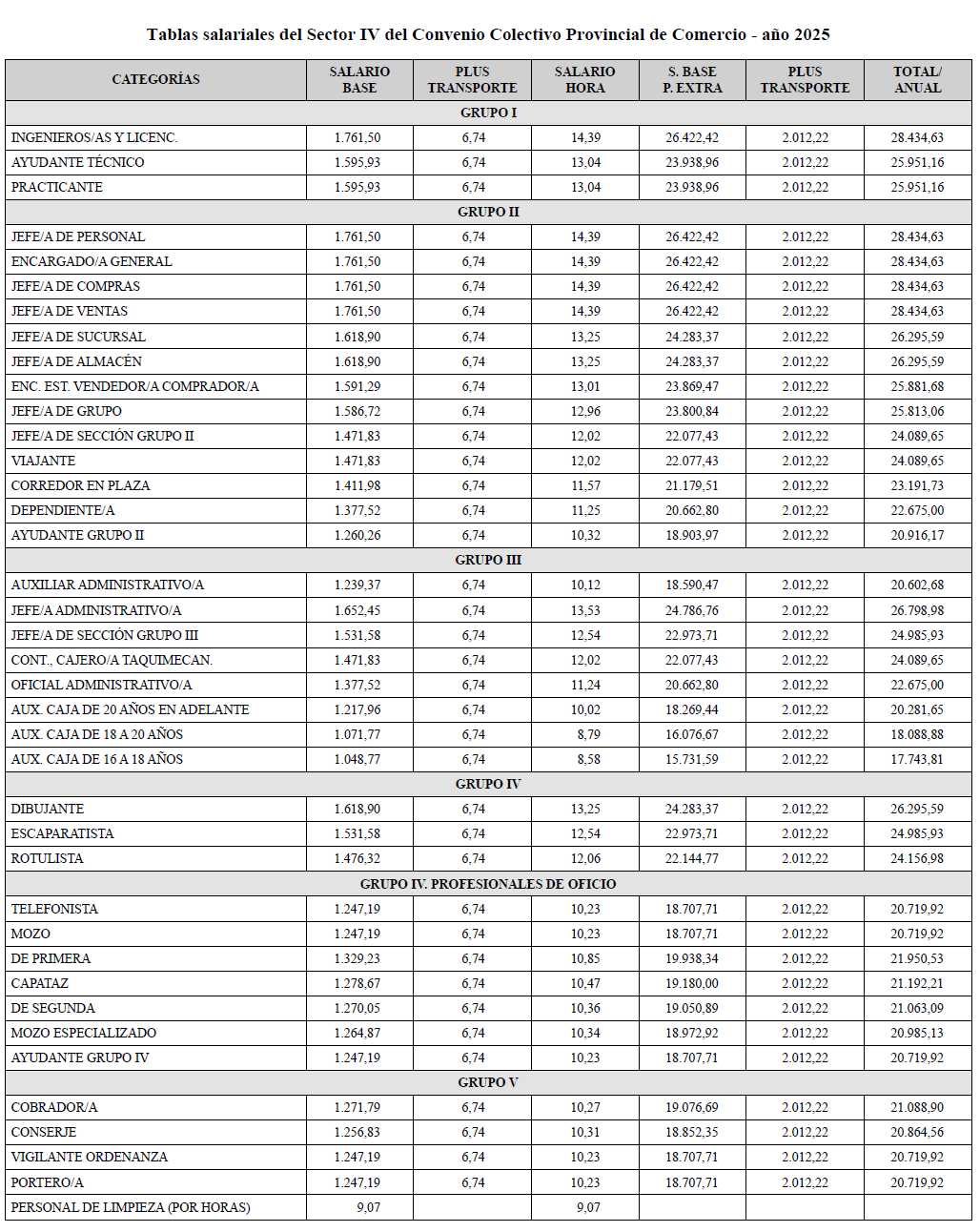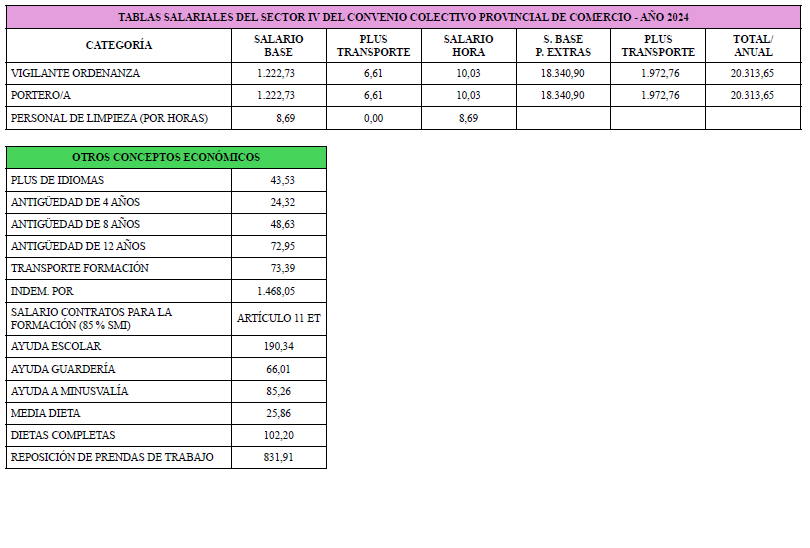 TABLAS SALARIALES DEL SECTOR IV DEL CONVENIO COLECTIVO PROVINCIAL DE COMERCIO – AÑO 2024.