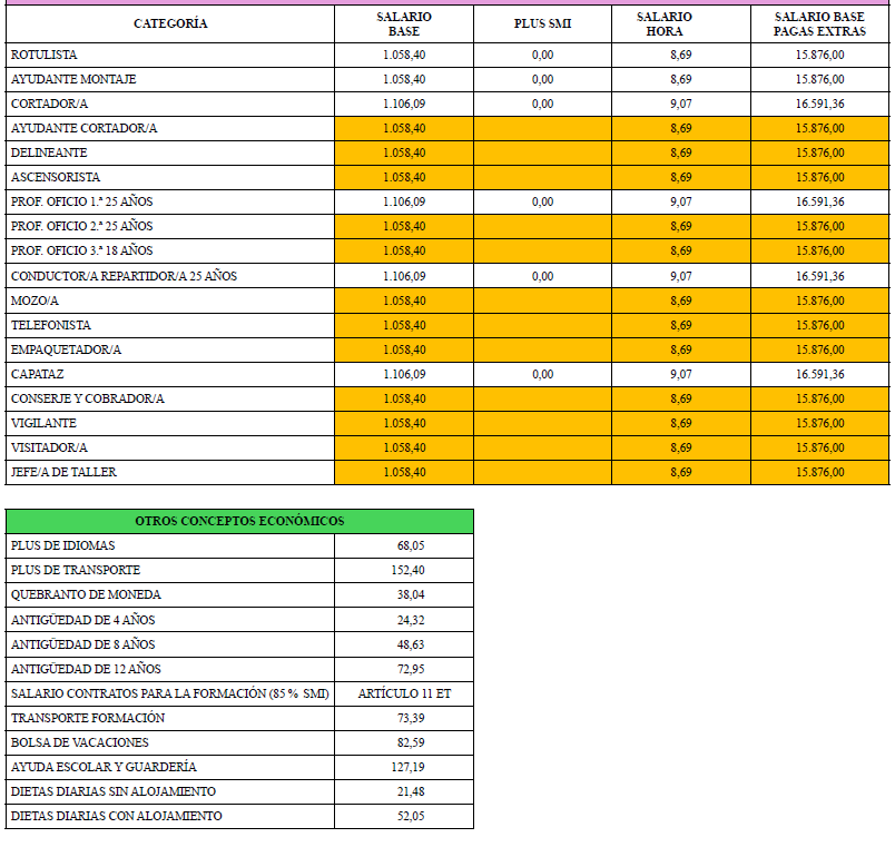 Aquellas categorías profesionales que no alcancen la cuantía del SMI vigente en cada uno de los años se les aplicarán las subidas pactadas, y en el caso de que tras esta subida siguiesen siendo inferiores al SMI de cada año, estas se incrementarán hasta alcanzar dicho importe de SMI anual.
