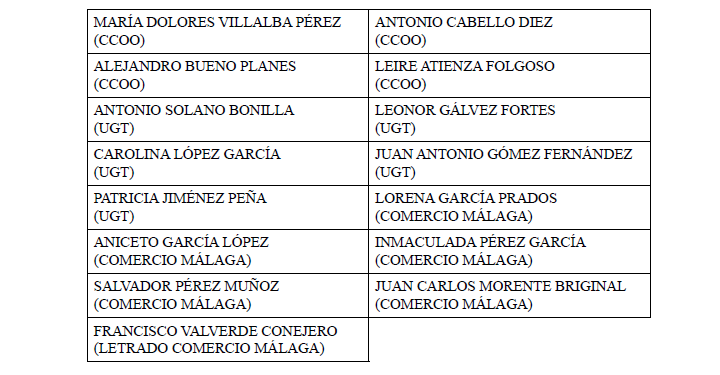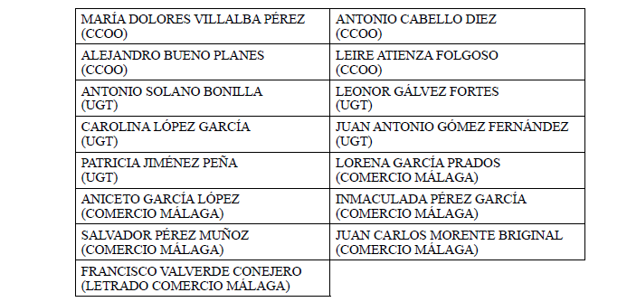 Los miembros de la comisión negociadora del Convenio Colectivo General de Comercio de la provincia de Málaga, por medio de la presente, certifican que la documentación presentada para su registro y publicación (acta de acuerdo y tablas salariales definitivas de 2025) coincide con lo acordado en el seno de esta y que es fiel reflejo del acta firmada por los miembros de la comisión negociadora.