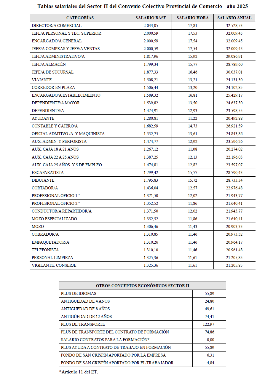 TABLAS SALARIALES DEL SECTOR II DEL CONVENIO COLECTIVO PROVINCIAL DE COMERCIO – AÑO 2024.