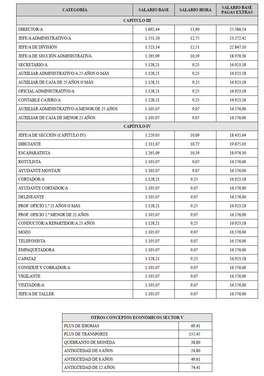Las categorías suprimidas de las tablas salariales pasarán a integrarse en las categorías inmediatamente superiores.