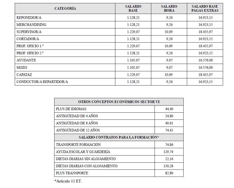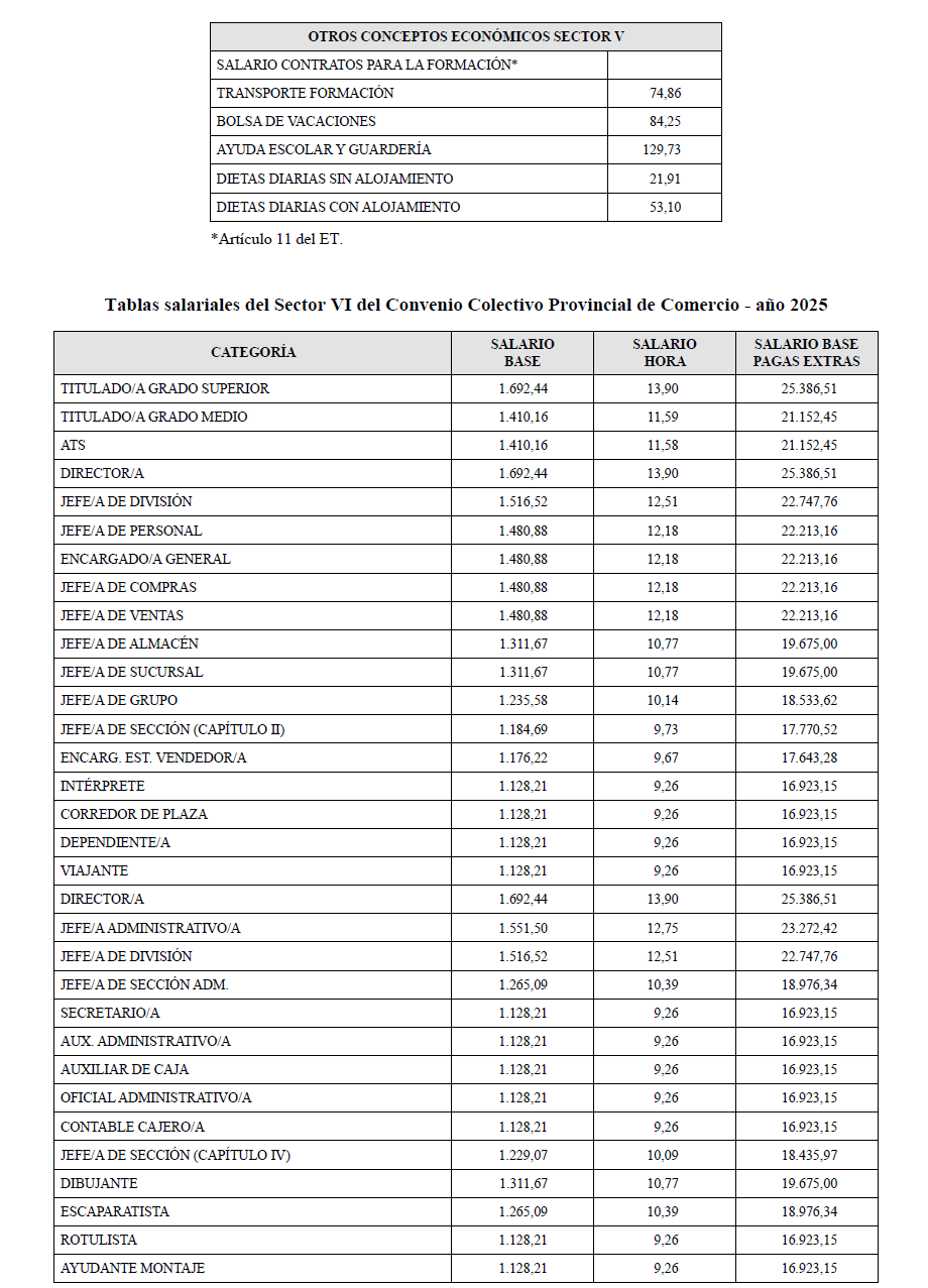 TABLAS SALARIALES DEL SECTOR VI DEL CONVENIO COLECTIVO PROVINCIAL DE COMERCIO – AÑO 2024.