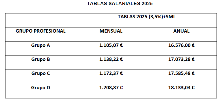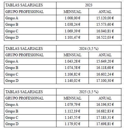 Las partes, acuerdan las siguientes tablas salariales: