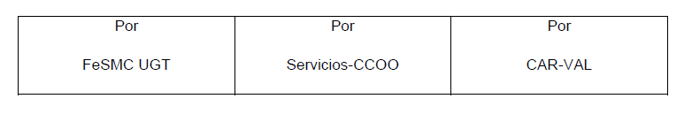 En Valencia, siendo las 10:00 horas del día 13 de febrero de dos mil veinticinco, se reúnen mediante videoconferencia, los representantes de una parte, de la Federación de Servicios, Movilidad y Consumo de UGT País Valenciano (FeSMC UGT) y Federación de Servicios de CC.OO. del País Valenciano. (SERVICIOS-CCOO), y de otra parte la Federación de Empresas de Charcutería y Carnicería de la Comunidad Valenciana (CAR-VAL), al objeto de adecuar las tablas salariales al SMI del 2025 y a su vez, dar cumplimiento al artículo 29, «Si la publicación de los salarios mínimos interprofesionales de cada uno de los años, superara las tablas salariales aprobadas, se establece que entre los grupos profesionales deberá existir, como mínimo un diferencial del 3 por ciento, para mantener la diferenciación de las funcionalidades». del Convenio Colectivo para la Comunidad Valenciana del sector del comercio minorista de Carnicería y Charcutería (Código de Convenio 80100175012021).