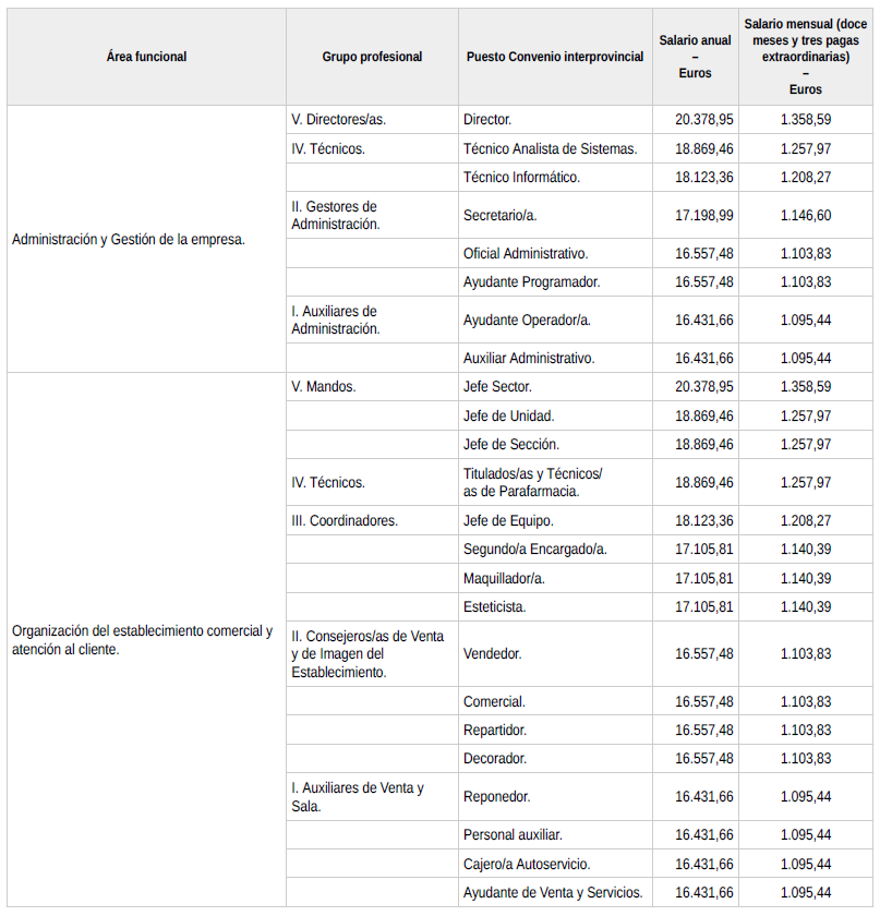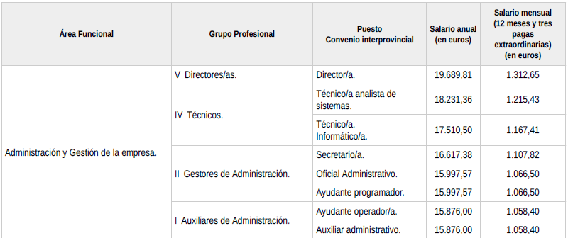 De acuerdo a lo previsto en el artículo 49 los nuevos salarios base del sector a partir del 1 de enero de 2025 serán los siguientes: