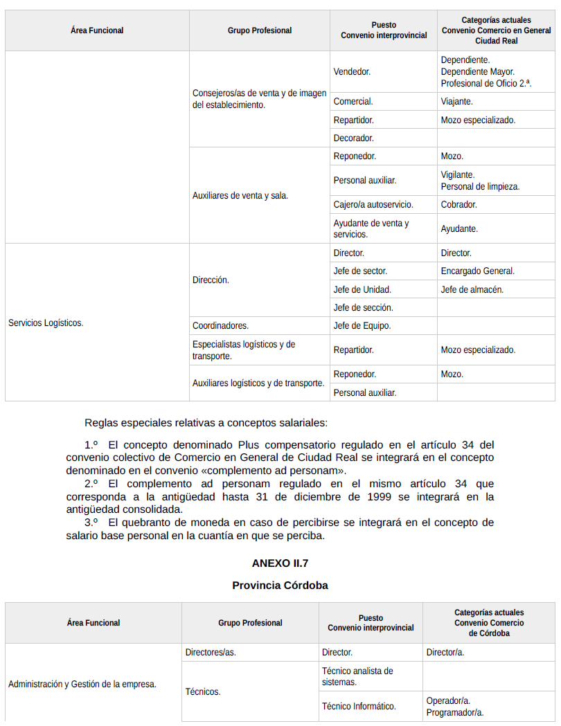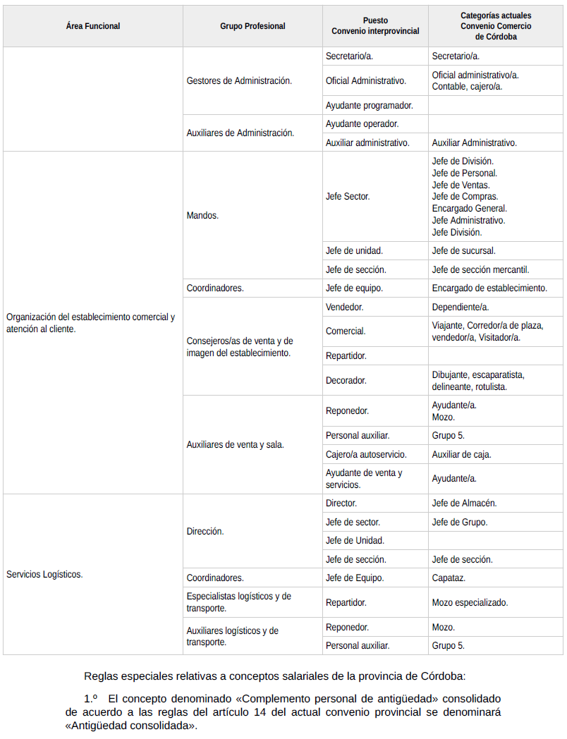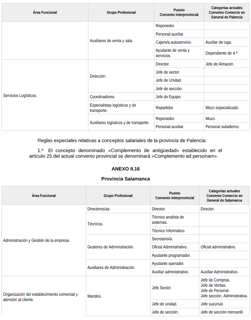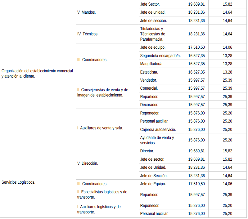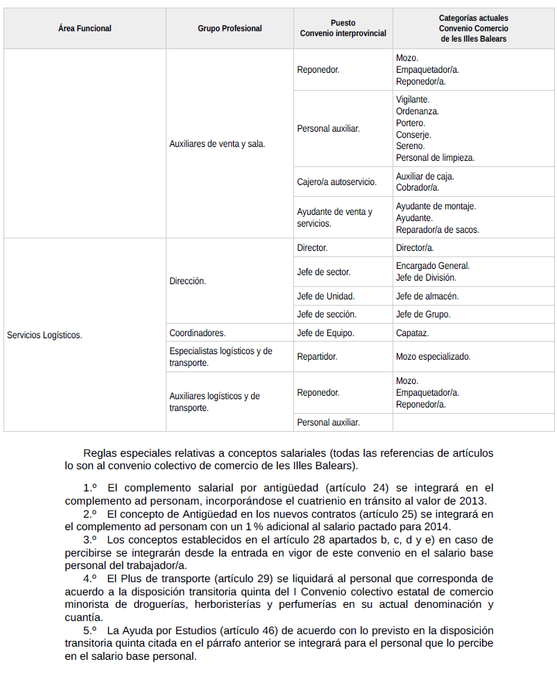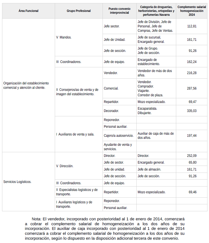 Nota: El vendedor, incorporado con posterioridad al 1 de enero de 2014, comenzará a cobrar el complemento salarial de homogeneización a los dos años de su incorporación. El auxiliar de caja incorporado con posterioridad al 1 de enero de 2014 comenzará a cobrar el complemento salarial de homogeneización a los dos años de su incorporación, según lo dispuesto en la disposición adicional tercera de este convenio.