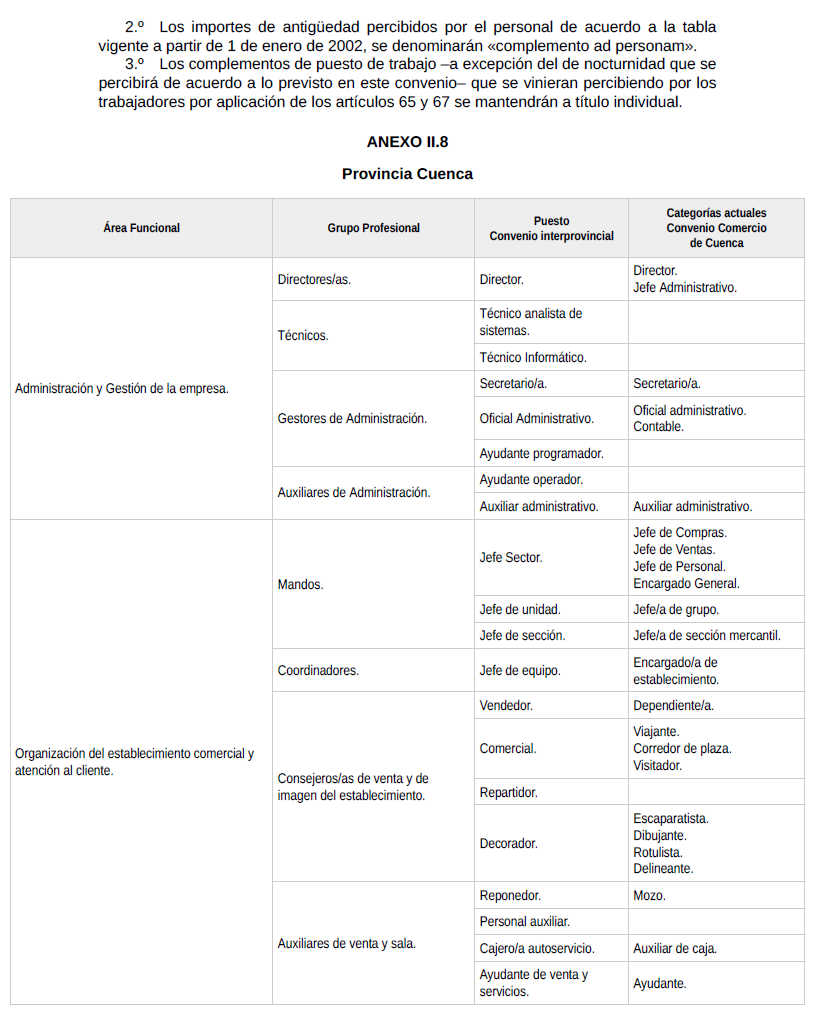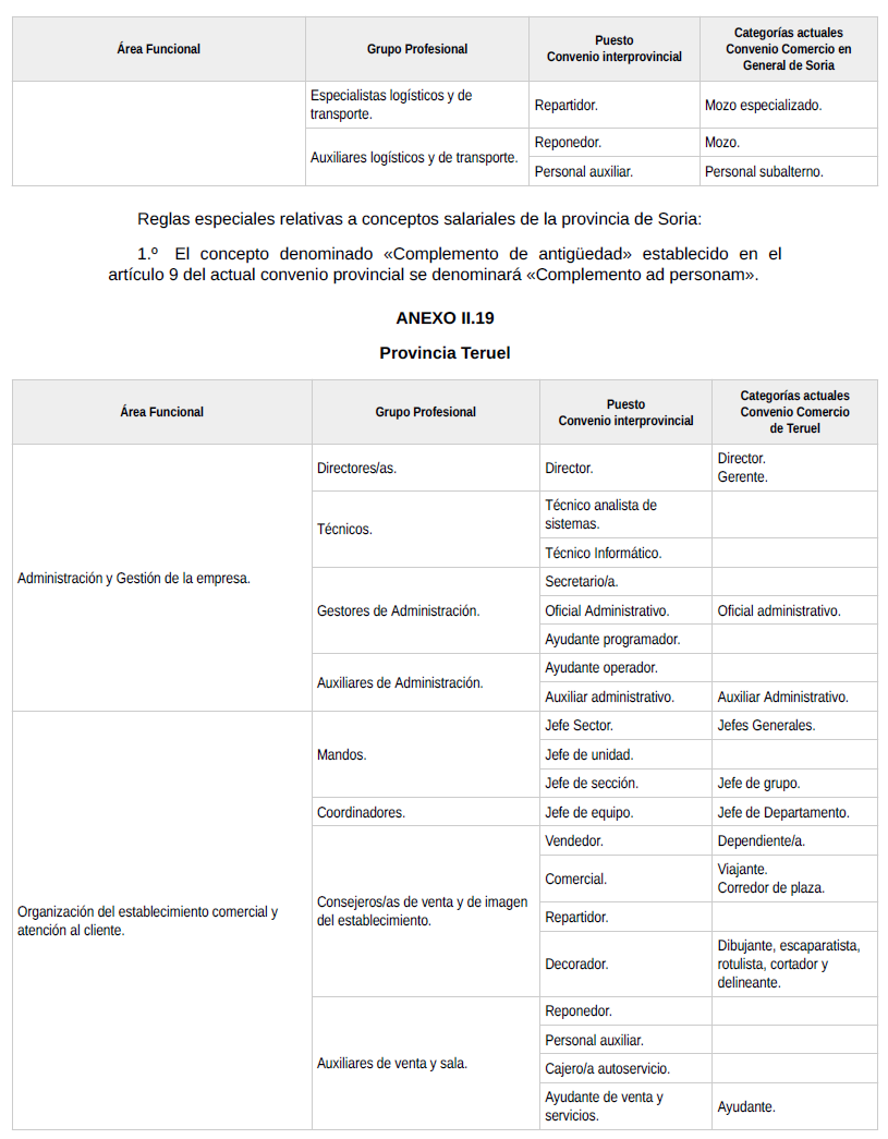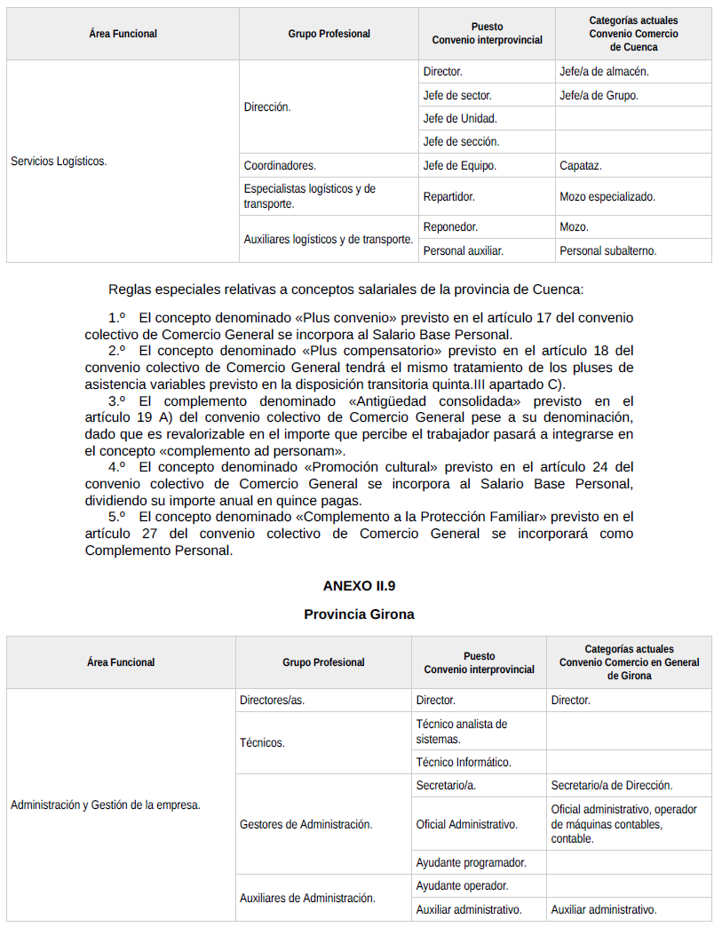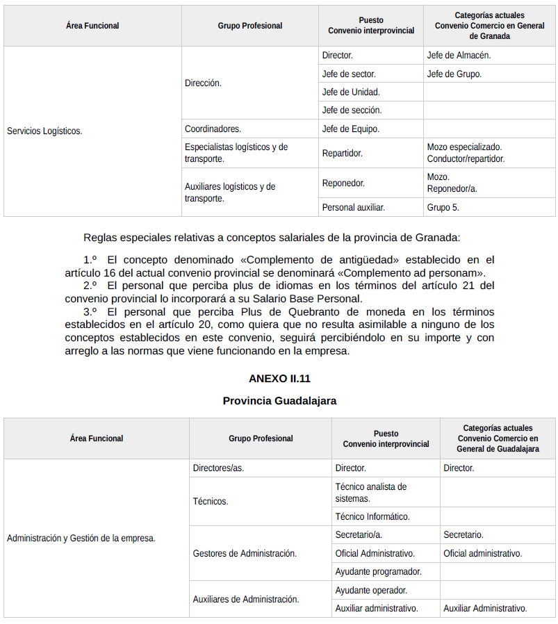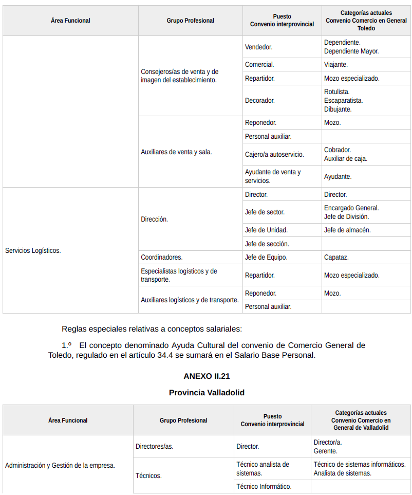 Nota: El vendedor, incorporado con posterioridad al 1 de enero de 2014, comenzará a cobrar el complemento salarial de homogeneización a los dos años de su incorporación. El auxiliar de caja incorporado con posterioridad al 1 de enero de 2014 comenzará a cobrar el complemento salarial de homogeneización a los dos años de su incorporación, según lo dispuesto en la disposición adicional tercera de este convenio.