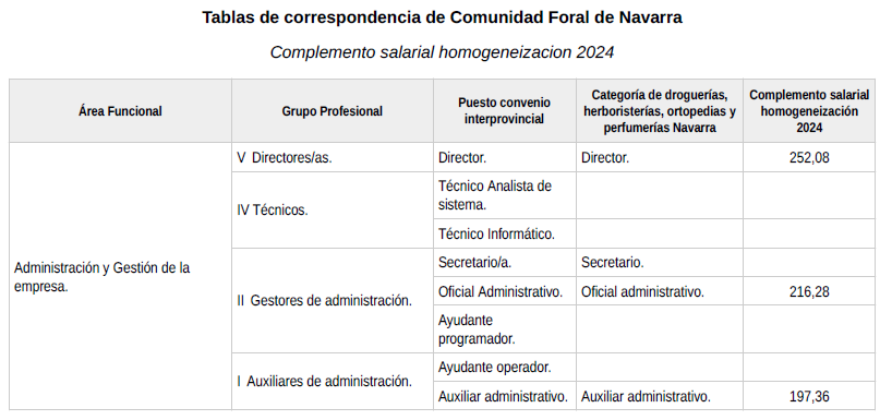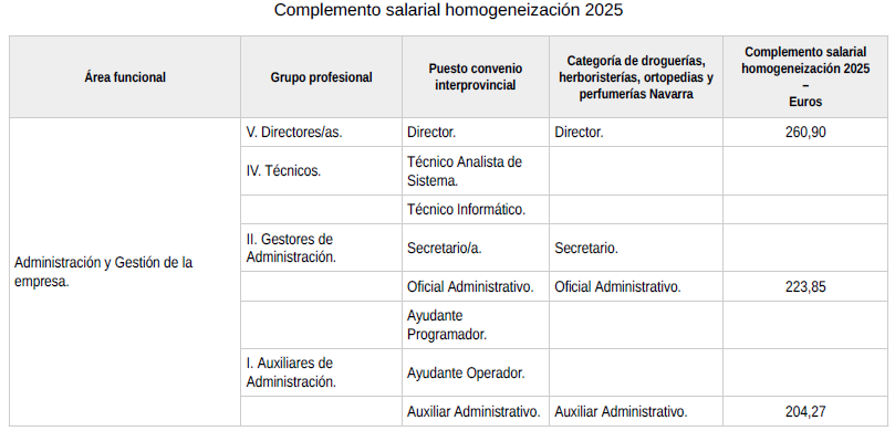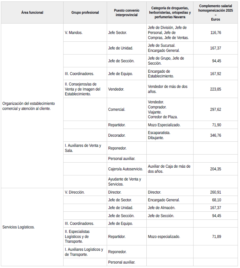 Para el año 2025 el importe del complemento salarial de homogeneización para las personas trabajadoras de centros de trabajo de la Comunidad Foral de Navarra será el siguiente: