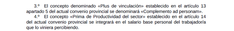 Para evitar problemas jurídicos dada la fecha de publicación del convenio (20 de diciembre) y dado que algunas empresas, por su proceso de nómina, no podrán incorporarlo en la fecha prevista las partes acuerdan modificar el citado texto por el siguiente: «El importe aquí fijado será abonado a la persona trabajadora en cuanto sea posible y a no más tardar, en el mes de enero de 2025».