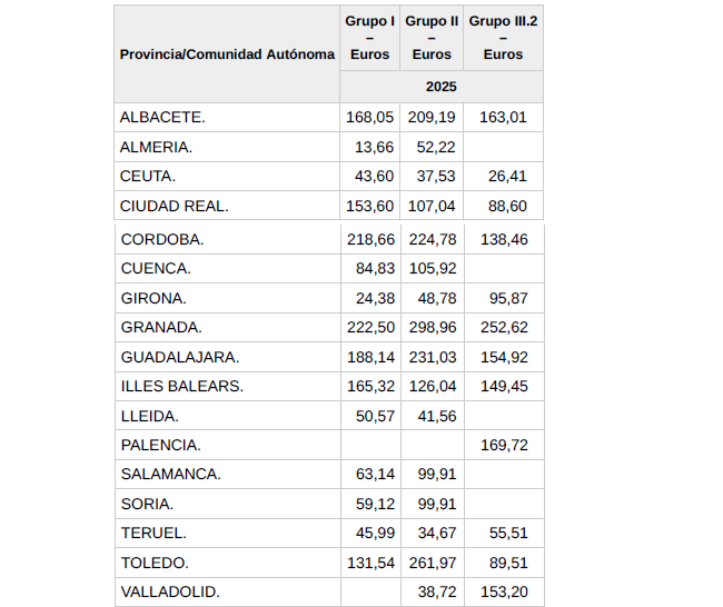 Actualizado con el 3,5% el importe del complemento salarial de homogeneización para el año 2025 en los distintos grupos y territorios donde resulte de aplicación será, desde 1 de enero de 2025, el siguiente: