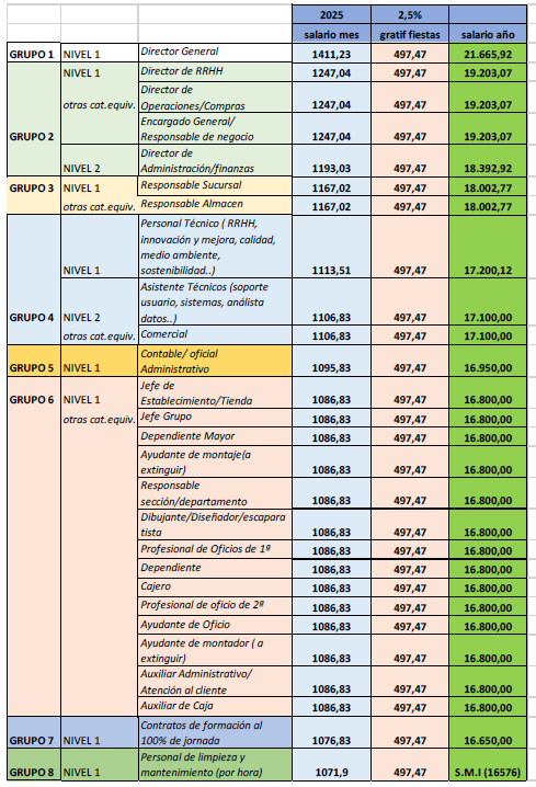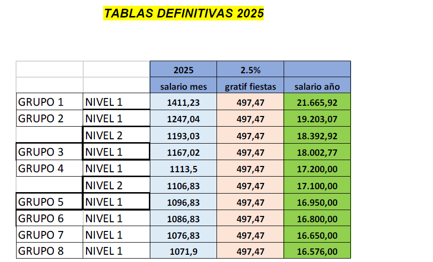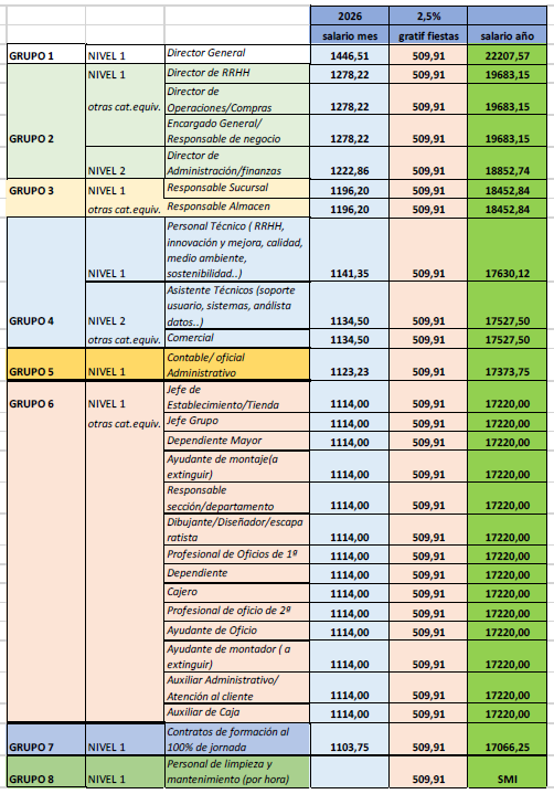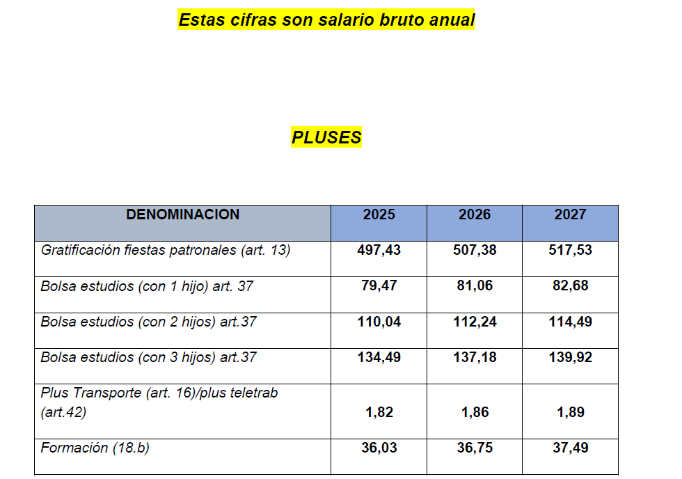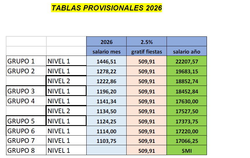 2026: Se incrementará un 2,5% sobre las tablas resultantes de 2025 desde el 1 de enero de 2026. En el caso que el IPC de 2026 sea superior al 2,5%, se incrementará hasta un 0,5%, que se incrementará en las tablas de 2027.