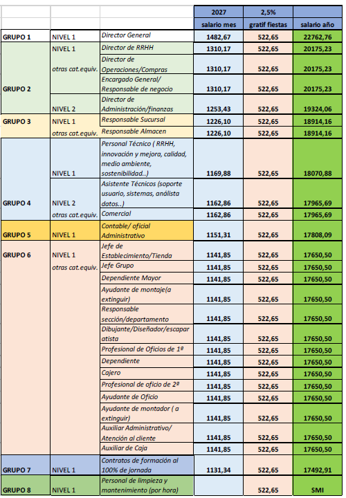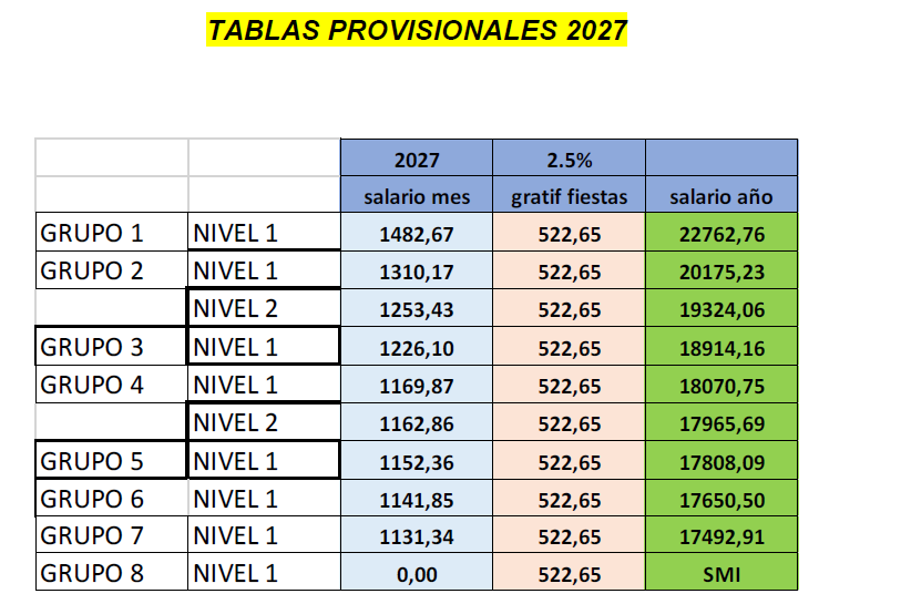 2027: Se incrementará un 2,5% desde el 1.1.27. En el caso que el IPC de 2027 sea superior al 2,5%, se incrementará hasta un 0,5%, que se incrementará en las tablas de 2028.