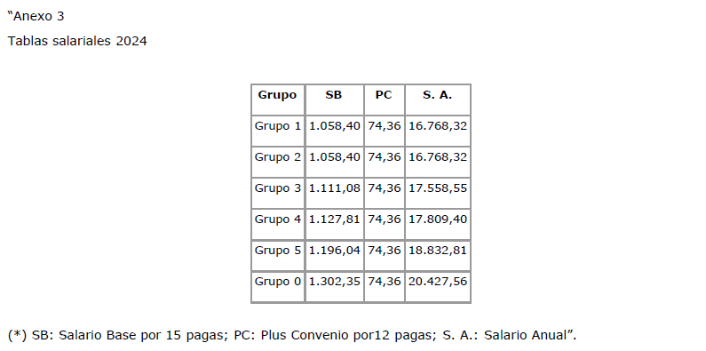 3. En la página 34, en el Anexo 3 de las tablas salariales del 2024: