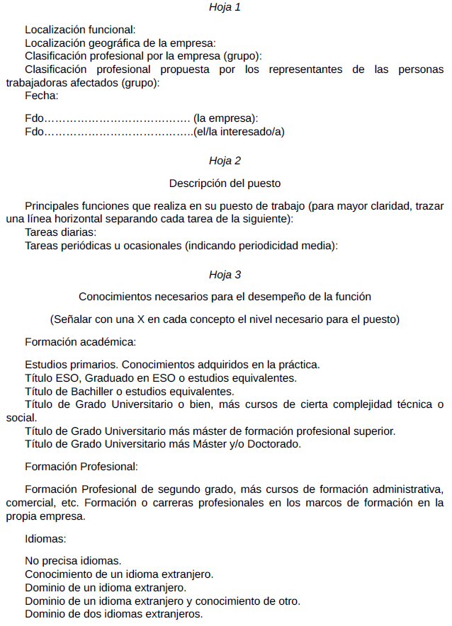 ANEXO I.- Modelo a rellenar para consultas de clasificación profesional a la Comisión mixta del Convenio de mayoristas e importadores de productos químicos industriales y de droguería, perfumerías y anexos