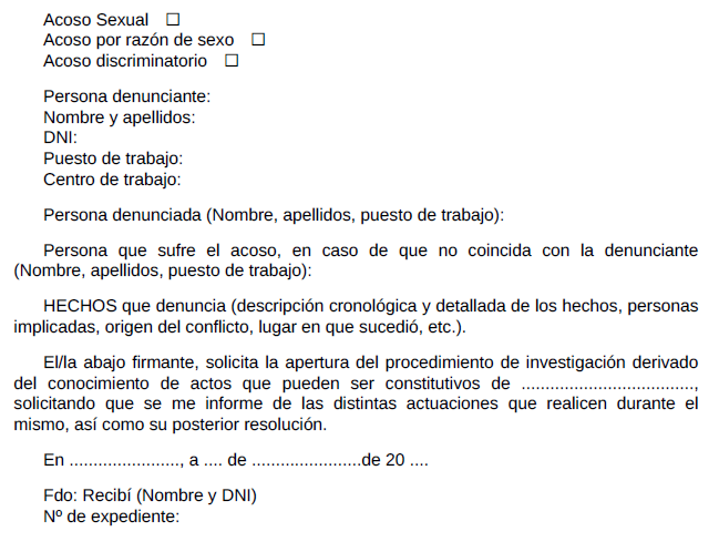 ANEXO II.- Formulario de denuncia interna por conducta constitutiva de Acoso Sexual.