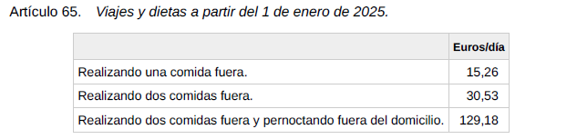 Y así, las tablas del año 2025 quedan como a continuación se expone: