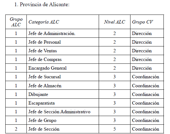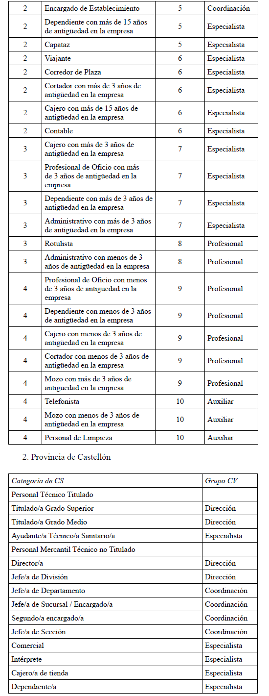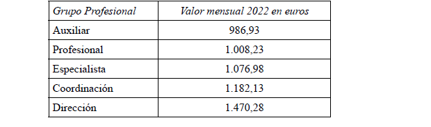 El valor bruto mensual para cada Grupo Profesional de los cuatrienios ... de Castellón y de Alicante