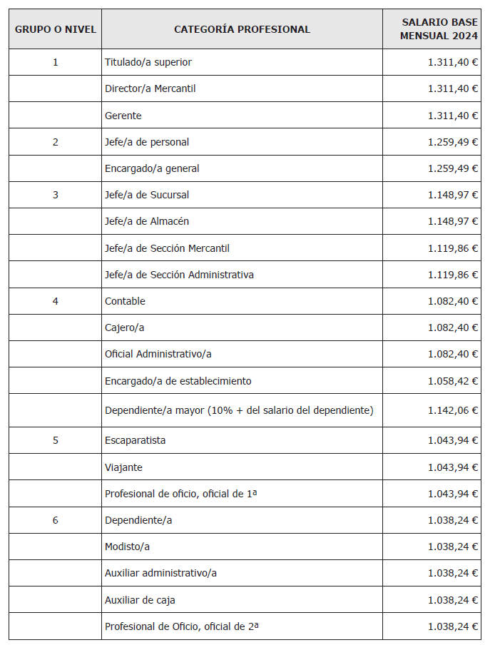 Jefe/a de sección mercantil: es la persona trabajadora que está al frente de una sección con mando directo o vigilancia del personal afecto a ella y con facultades para intervenir en las ventas y disponer lo conveniente para el buen orden en el trabajo, debiendo también orientar a sus principales sobre las compras y surtidos de artículos que deban efectuarse y a los dependientes sobre la exhibición de las mercancías.