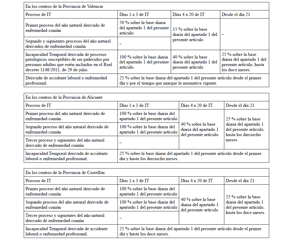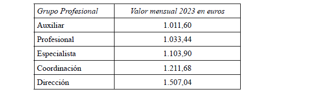 El valor bruto mensual para cada Grupo Profesional de los cuatrienios ... de Castellón y de Alicante