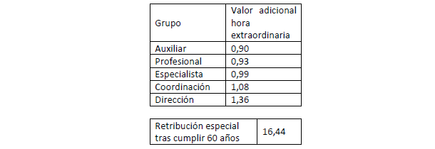 un complemento salarial mensual de antigüedad adicional de 101,56 brutos mensuales