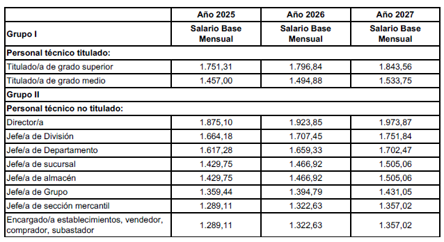ANEXO I.- Subsector de Comercio de Alimentación. Tablas Salariales Años 2025, 2026 y 2027.