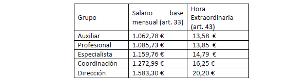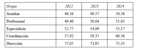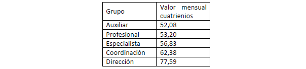 El valor bruto mensual para cada Grupo Profesional de los cuatrienios ... de Castellón y de Alicante