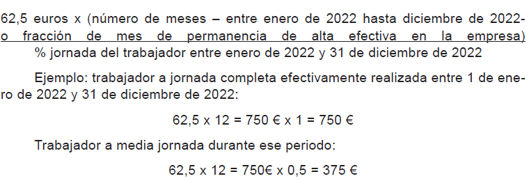 Esta paga no será consolidable y se percibirá en proporción a la jornada efectivamente realizada por el trabajador entre el 1 de enero de 2022 y el 31 de diciembre de 2022, con arreglo a la siguiente fórmula: