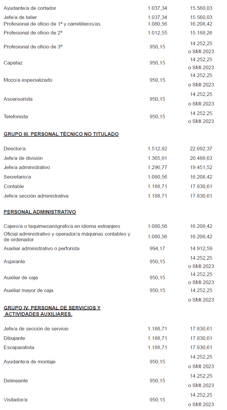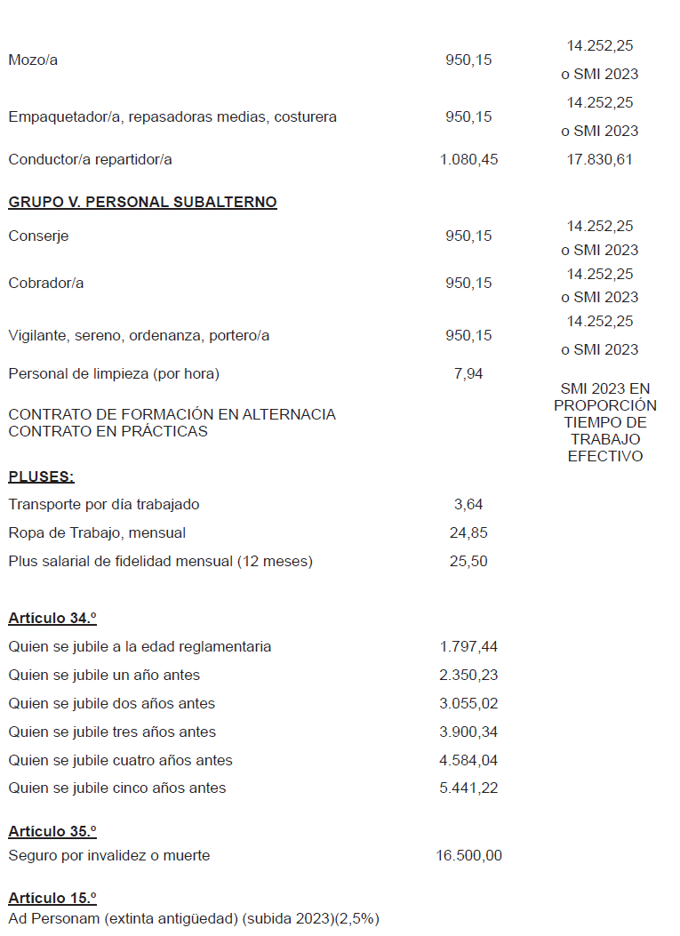 Atrasos: El cálculo de los atrasos correspondientes de salarios y complementos del convenio será desde el 1 de enero de 2023 hasta la fecha de publicación. El pago se realizará dentro de los tres meses siguientes a la publicación del convenio.