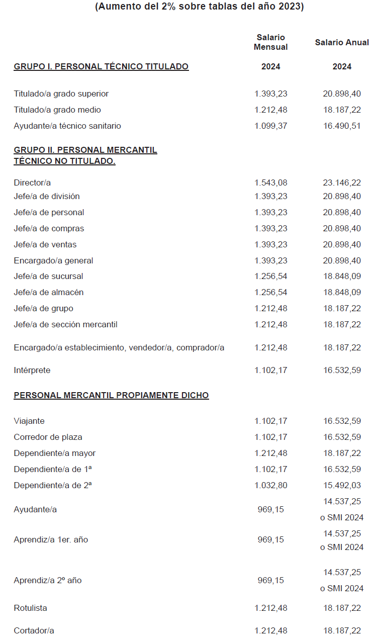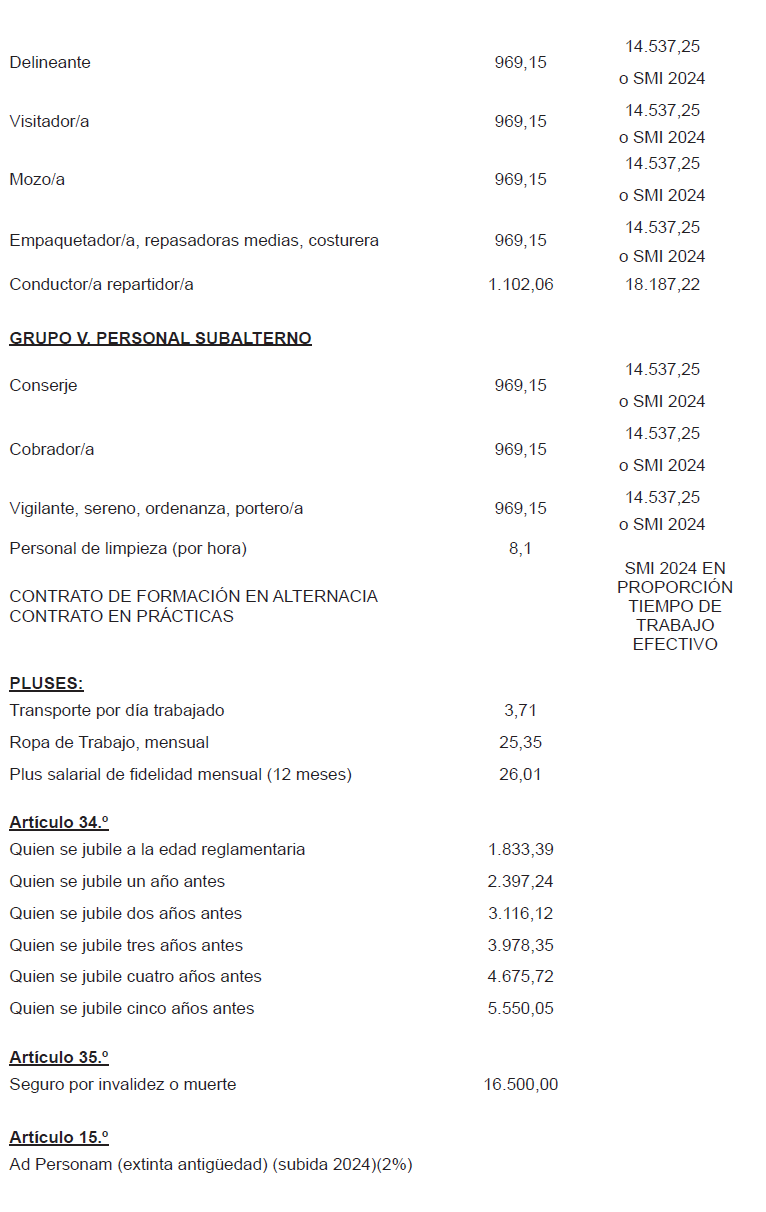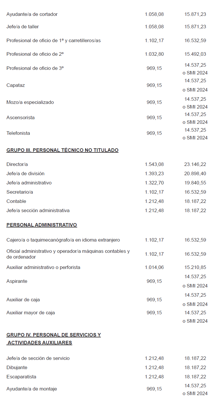 Anexo III. Tabla del año 2024: incremento del 2% sobre la tabla de 2023.
