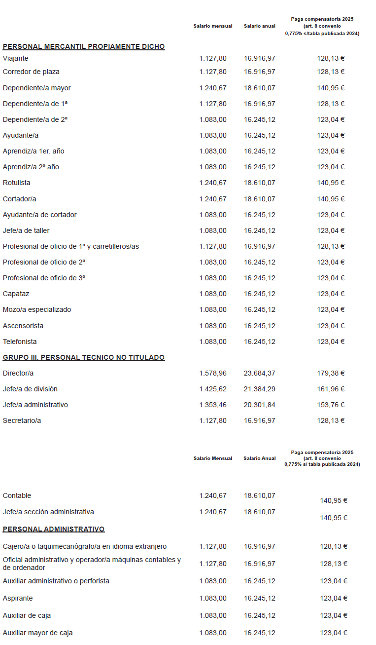 Segundo. – Paga compensatoria en 2025- El 25% de la cantidad correspondiente a la revisión es de 0,775%, teniendo derecho a cobrarla el personal de alta en la empresa en la fecha de publicación de esta revisión salarial.
