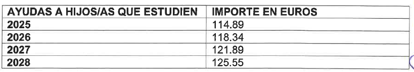 Matrimonio con cuatro o más hijos/as: 29% sobre el salario base más el complemento «ad personam».