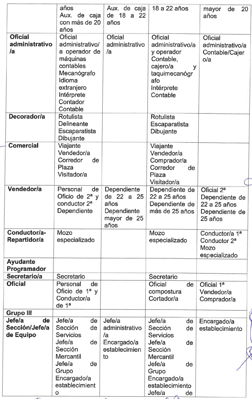 – Ayudante de venta y servicios: Es la persona que, previa la oportuna formación, realiza bajo la dirección de un/a superior funciones sencillas dentro de su área, colaborando con las personas afectas en sus distintas especialidades.
