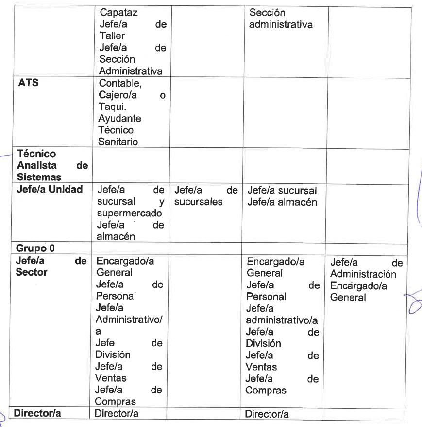 Criterios generales: Realiza funciones con alto grado de autonomía, iniciativa y responsabilidad, ejerciendo el mando, dirección, control y supervisión de tareas y/o personas. Se incluyen también en este grupo profesional funciones que suponen la participación en la definición de los objetivos concretos a alcanzar. Decide sobre un conjunto amplio de empleados/as y es responsabilidad suya la formación de las personas que están bajo su dependencia.