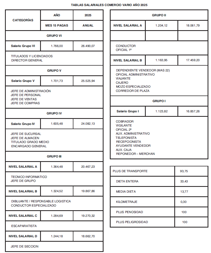 TABLAS SALARIALES COMERCIO VARIO AÑO 2025