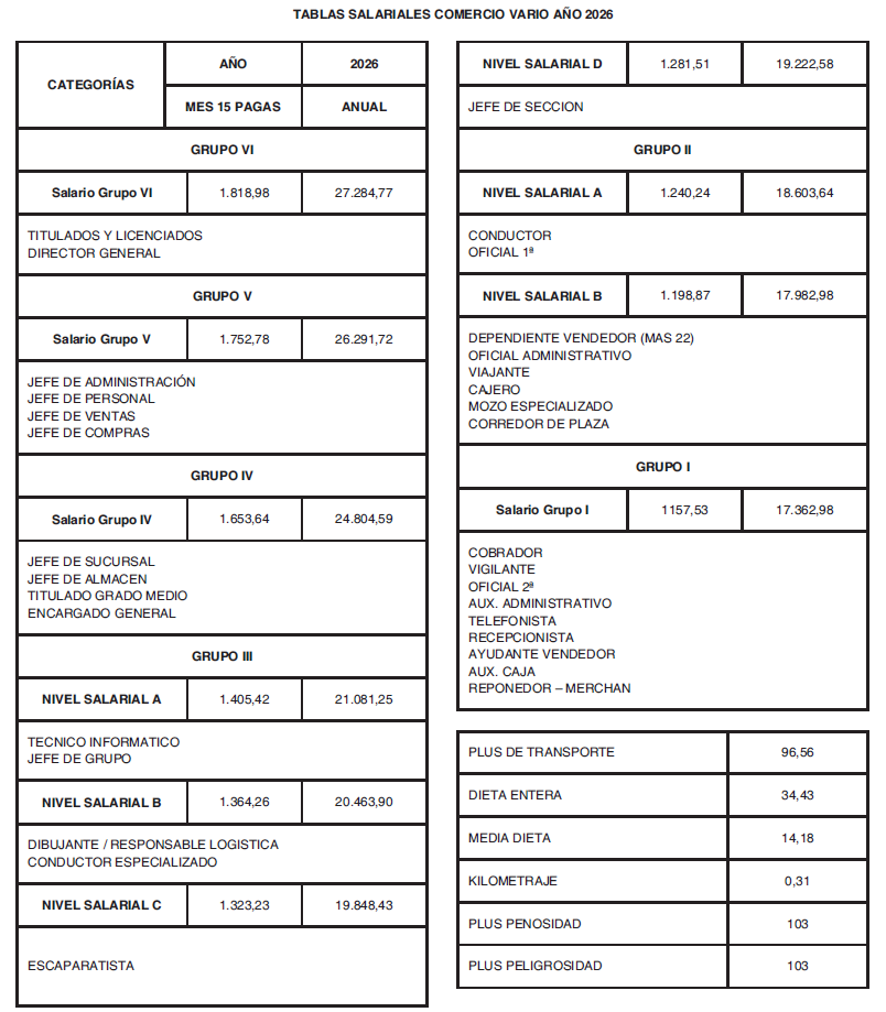 TABLAS SALARIALES COMERCIO VARIO AÑO 2026