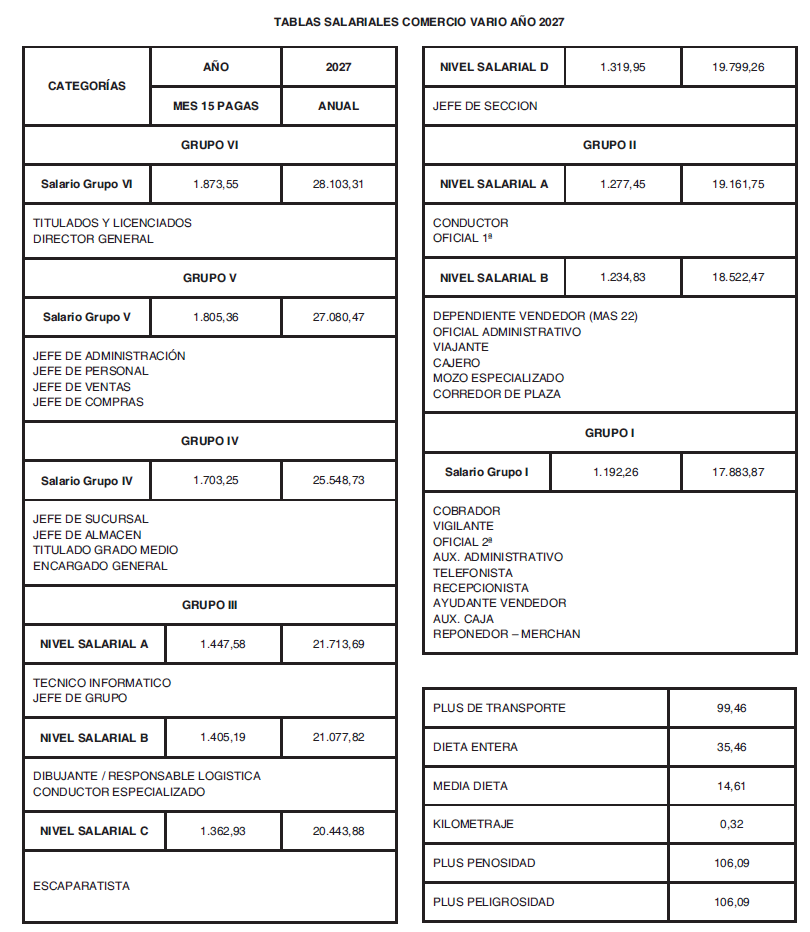 TABLAS SALARIALES COMERCIO VARIO AÑO 2027