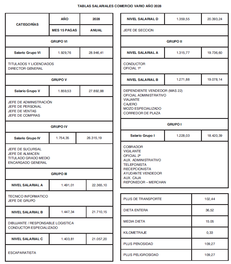TABLAS SALARIALES COMERCIO VARIO AÑO 2028