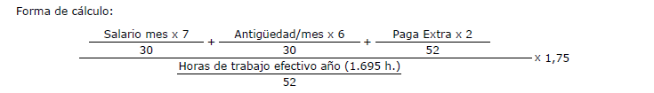 El módulo para el cálculo y pago del complemento por horas extraordinarias, será el cociente que resulte de dividir el salario base de cada trabajador, más los complementos personales de puesto de trabajo, de residencia y de vencimiento periódico superior al mes, referidos todos ellos a la semana normal de trabajo, por el número de horas de trabajo de dicha semana. A los solos fines del cálculo, se entenderá por semana normal de trabajo el número de horas que resulte de dividir las previstas como de trabajo efectivo en el transcurso del año por las cincuenta y dos semanas del mismo.