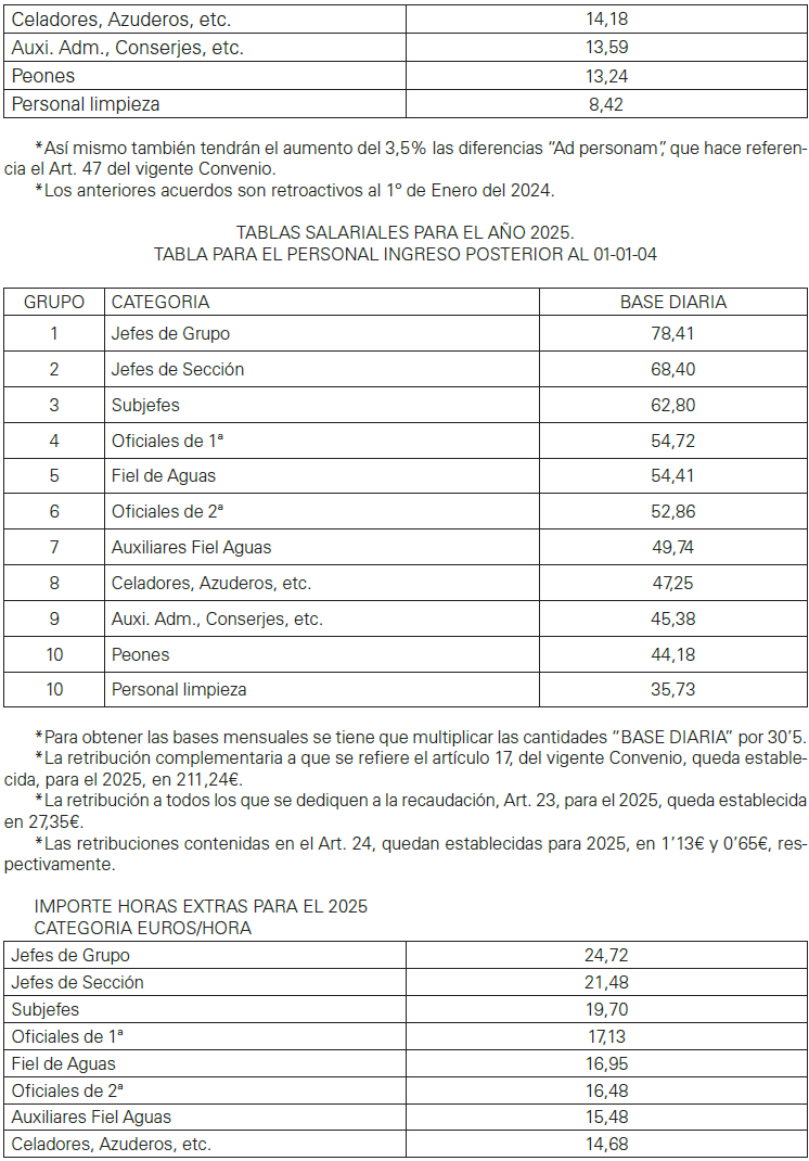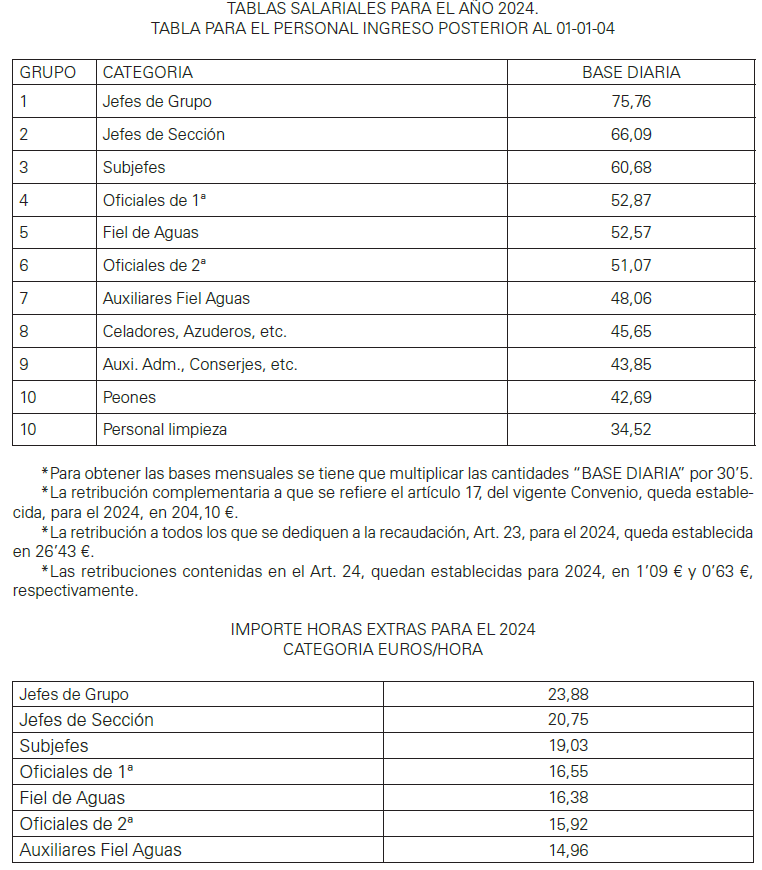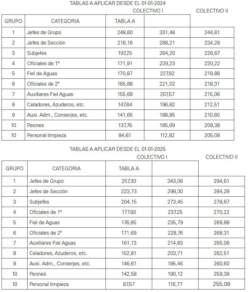Subgrupo II.- Oficial 2ª, Auxiliar fiel de Aguas, Subcapataz, Oficial de 2ª administrativo.