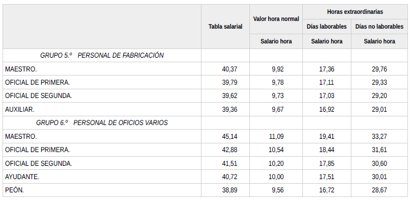 Cualquier defecto en el cálculo que se expone en las distintas tablas salariales, esta Comisión Paritaria lo corregirá en el plazo máximo de quince días contando desde la fecha de firma de su conocimiento.