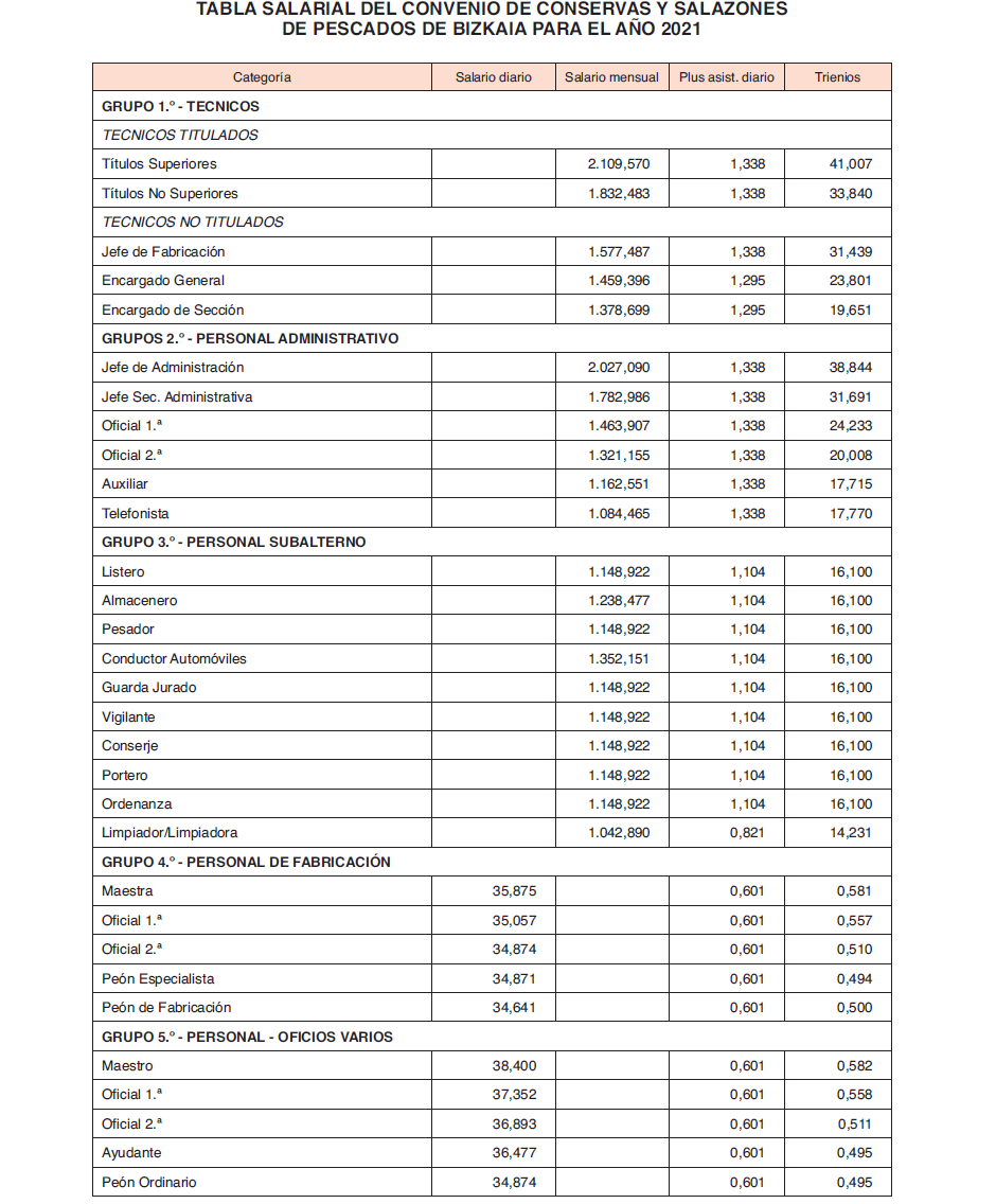 CONVENIO COLECTIVO DE CONSERVAS Y SALAZONES DE PESCADO DEL TERRITORIO HISTÓRICO DE BIZKAIA 2021-2024.