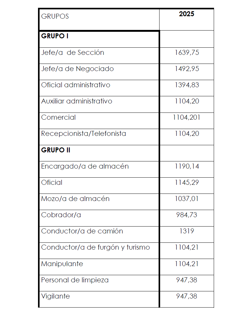 La tabla salarial del 2025, supone un incremento del 2,8% sobre la vigente en el 2024.