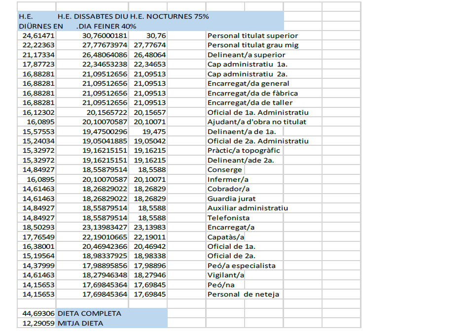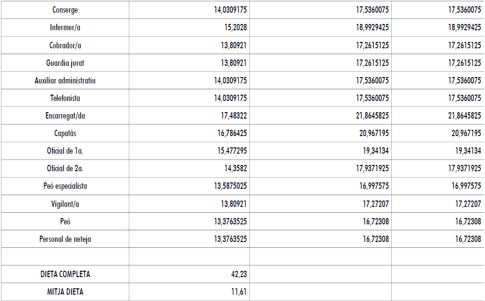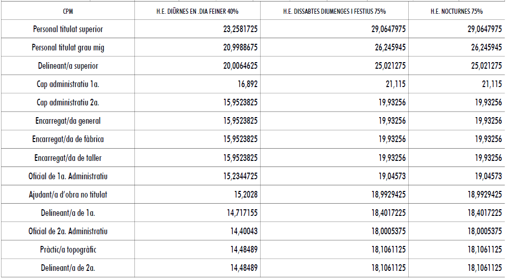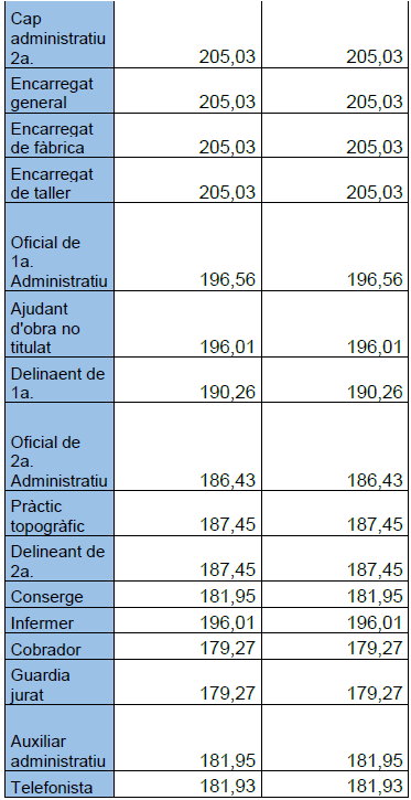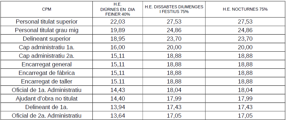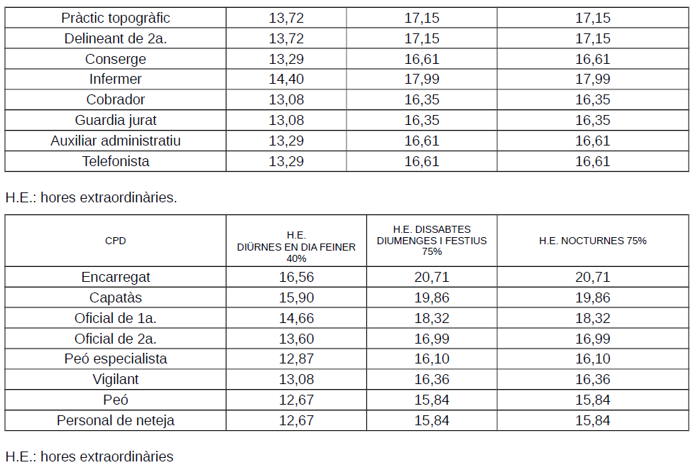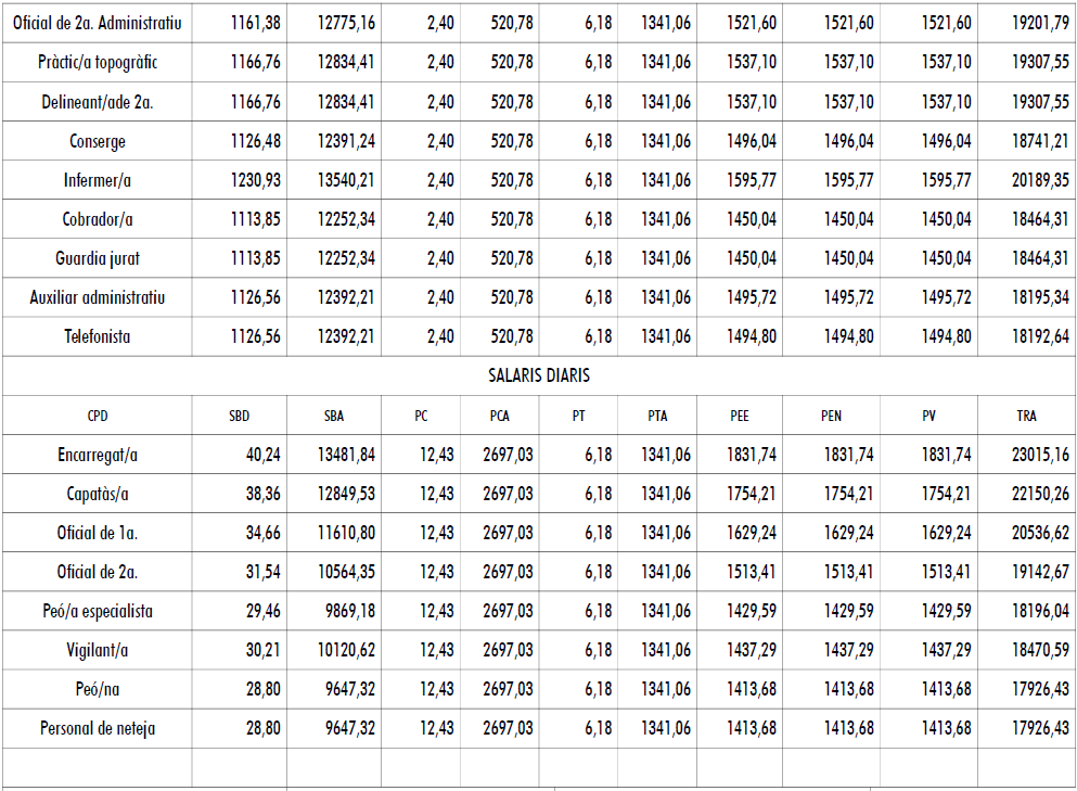Per l’any 2019 s’aplicarà amb efectes de l’1 de gener un increment salarial del 2,25% segons taules publicades al BOP de Lleida de data 26-09-2019 número 186.