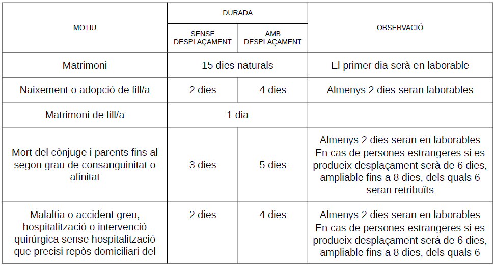 Les vacances seran de 30 dies naturals, dels quals 21 hauran de ser laborables.