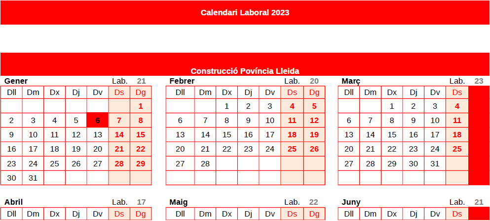 Com a únic punt de l’ordre del dia i segons estableix el Conveni col·lectiu del sector de la Construcció de la Província de Lleida, aquesta Comissió, acorda aprovar el calendari laboral per a l’any 2026 en els següents termes: