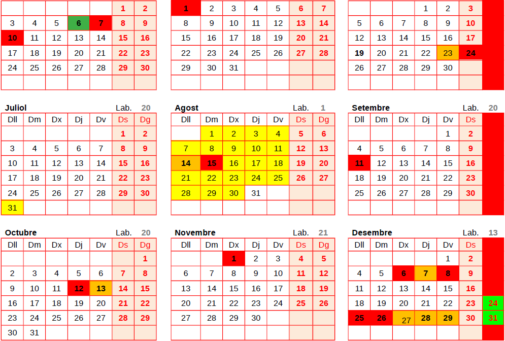 La jornada laboral festiva segons conveni col·lectiu serà els dies 9 d’abril i 24 i 31 de desembre.