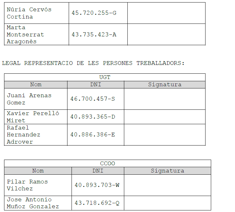 Les parts consideren oportú deixar constància que les taules que s’aproven en aquest acte es corresponen a les taules definitives de 2024 un cop aplicada la clàusula de garantia salarial. Es troben pendents de negociació les taules corresponents a l’any 2025 amb l’increment que correspongui.