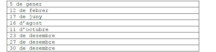 Els dies festius per excés de jornada al 2026 seran 8 i es fixen en els següents: