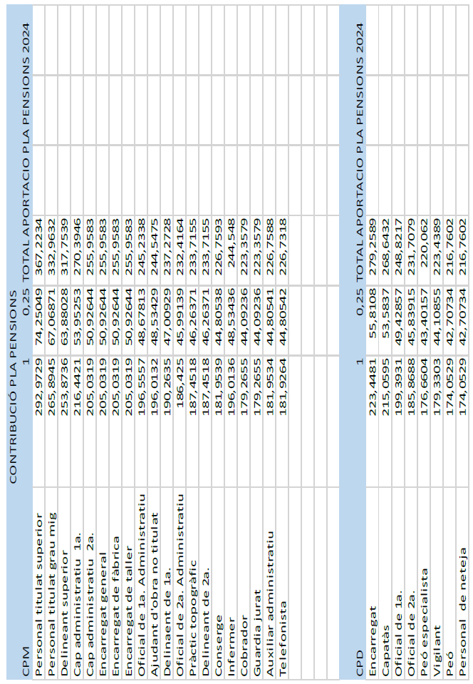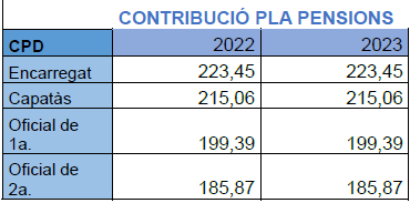2.- Contribució empresarial en pla de pensions: De la mateixa manera, correspon un increment de 0,4% a la contribució de les empreses al Pla de Pensions per a l’any 2024.