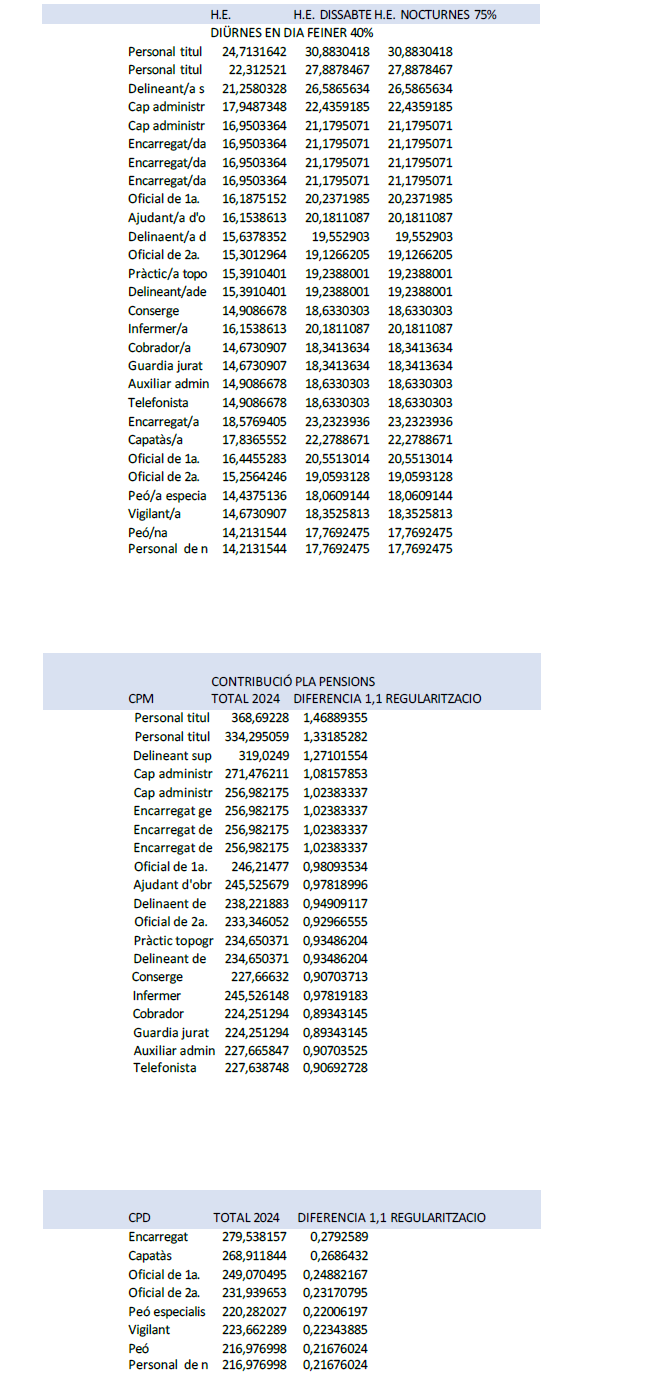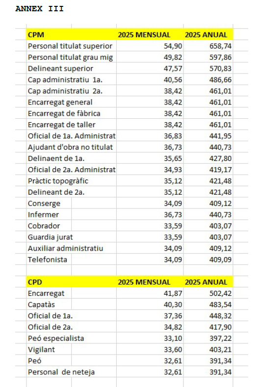 Les taules salarials corresponents a l’any 2025 s’incorporen a aquesta acta com Annex I.